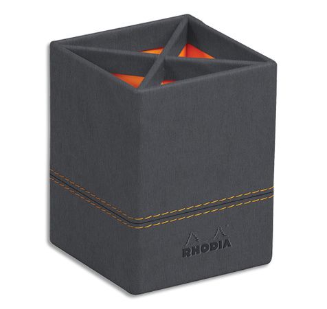 Pot à crayons RHODIArama en simili cuir italien, 4 cmpts. Dim (lxhxp) 8x11x8 cm. Coloris Titane