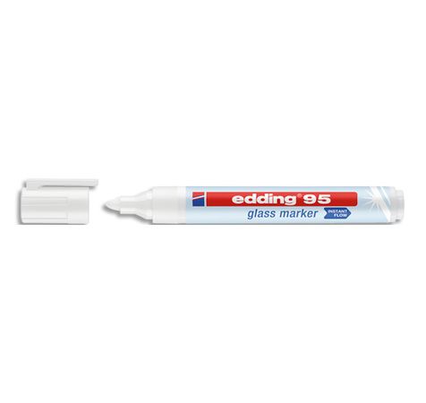 EDDING Marqueur E-95 effacable à sec pour tableau en verre. Coloris blanc