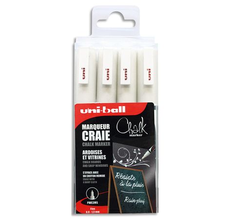 Marqueur craie qui résiste à la pluie. Peut être utilisé en intérieur et en extérieur. Couleurs lumineuses. S'efface avec un chiffon humide. Idéal pour les menus, les tableaux noirs, les panneaux lumineux et vitres. Pochette pointe ogive