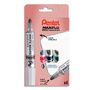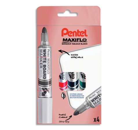 Réencrage par pression sur le bouton poussoir. Utilisation jusqu'à la dernière goutte. Pointe ogive.
