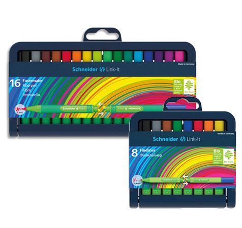 Link It Stylo fineliner pointe fine 0,4 mm et pointe feutre 1 mm. - Corps triangulaire de couleur vert foncé caoutchouté pour une parfaite tenu en main. Corps fabriqué à 88 % en bio-plastique. Pointe fineline 1,0 mm Pochette de 8