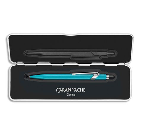 Corps hexagonal en aluminium, léger et résistant. Clip et bouton en metal. Chargé avec une cartouche Caran d'Ache Goliath M Bleue.