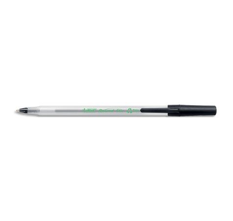 Stylo bille pointe moyenne, fabriqué à partir de matériaux recyclés. Corps fin et transparent avec capuchon et clip. Encre noire ou bleue.