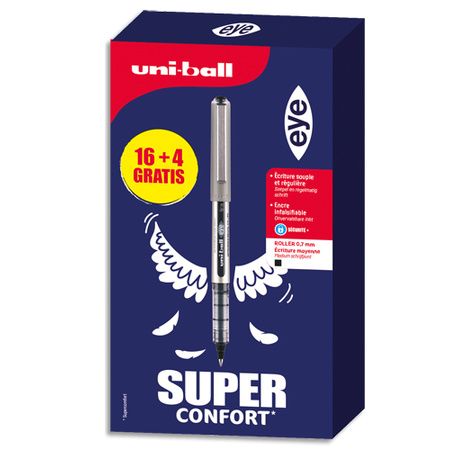 Boîte de 12+4 rollers Eyes à encre liquide. Pointe en acier inoxydable 0.7mm. Noir