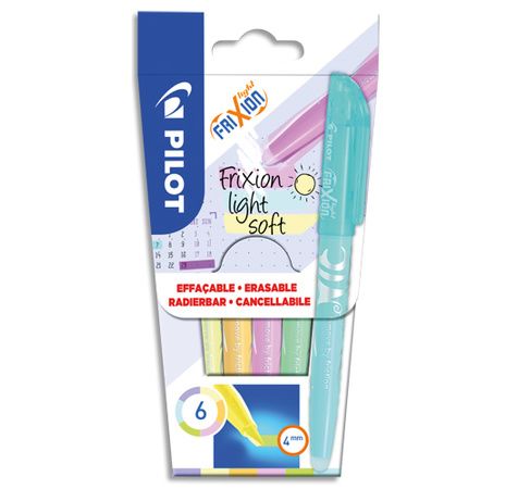 PILOT Pochette de 6 surligneurs effaçables FRIXION Light Soft. Coloris pastel