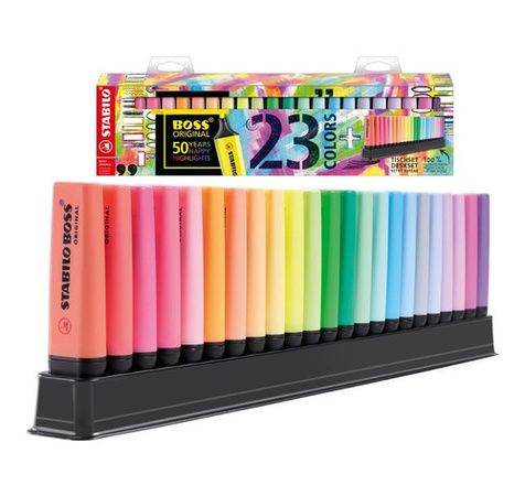 Décliné en 9 couleurs fluo intenses et en 14 teintes pastel tendances, STABILO BOSS ORIGINAL est le surligneur incontournable pour se concentrer sur les informations essentielles à l'école comme au bureau depuis 1971. Alliant qualité et performance, STABILO BOSS ORIGINAL peut rester ouvert jusqu'à 4 heures sans sécher grâce à son procédé anti-dessèchement. La pointe biseautée du surligneur fluo permet 2 largeurs de tracé (2 et 5 mm) pour surligner avec un trait épais ou souligner avec un trait plus fin vos documents au travail comme à la maison. Les surligneurs STABILO sont idéals également pour ombrer, encadrer, décorer vos projets et pour vos loisirs créatifs tels que le lettering, le bullet journal, ... STABILO BOSS ORIGINAL offre une capacité de 350 mètres de surlignage et son encre universelle à base d'eau diffuse une couleur fluo intense tout au long de son utilisation.