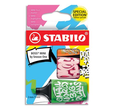 Etui carton de 3 surligneurs BOSS MINI by Snooze One.Pointe biseautée. Coloris vert, rose, orange