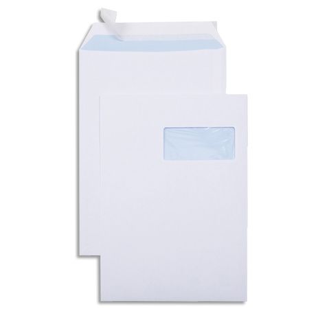 Boîte de 250 pochettes velin Blanc 90g C4 229x324mm auto-adhésives avec fenêtre 50x110mm
