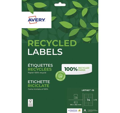 AVERY Boite de 210 étiquettes recyclées blanches 99,1 x 38,1mm. Impression Jet d'encre & Laser