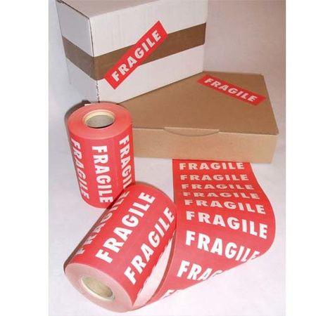 Rouleau de 1000 Etiquettes imprimées FRAGILE blanc fond rouge - Format 150 x 42,5 mm
