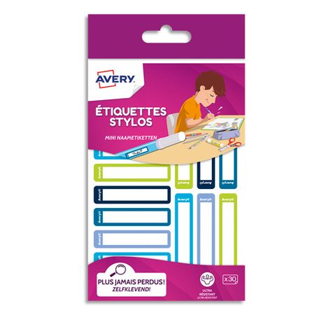 Blister de 30 Etiquettes Stylos 50x10mm, coloris bleu/vert, écrire avec un feutre permanent