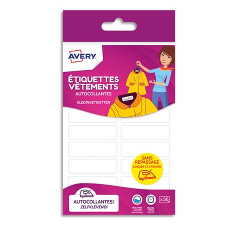 Blister de 36 étiquettes vêtements autocollantes 13 x 45 mm, coloris blanc