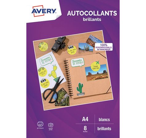 Décorer et personnaliser cadeaux, objets, albums photos. Imprimez vos motifs et découpez la forme souhaitée. Séchage instantané. Format 19,9 x 28,9 cm. Blanc brillant, compatible jet d'encre, qualité photo. Sachet de 8 feuilles. Blanc