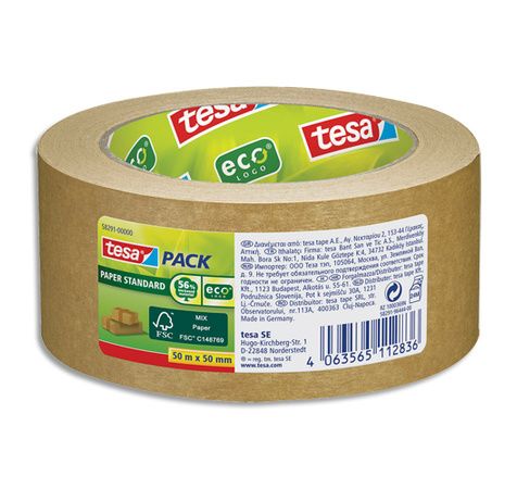 TESA Ruban adhésif d'emballage Kraft marron EcoLogo sans solvant 50mx50 mm