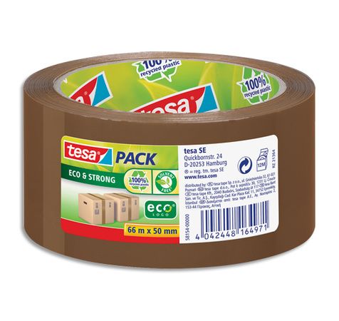 Ruban adhésif d'emballage qui combine la durabilité avec des caractéristiques respectueuses de l'environnement. Il est constitué à 100 % de plastique recyclé et ne contient ni PVC ni solvant. Résistant aux UV. Se déroule en silence, sans bruit désagréable. Epaisseur totale 56 microns.