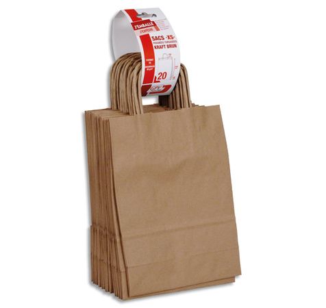 Paquet de 20 sacs à anse torsadées kraft brun 80gr/m². Format 24x18x8cm (XS) FSC-M.
