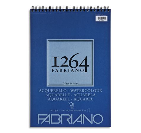 Bloc 1264 Aquarelle. 30 feuilles A3. Papier blanc naturel satiné 300g. Spirale sur la largeur
