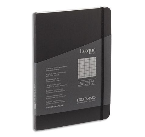 Carnet ECOQUA PLUS A5 couverture souple 80 pages quadrillées. Coloris noir