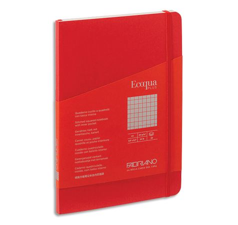 Carnet ECOQUA PLUS A5 couverture souple 80 pages quadrillées. Coloris rouge