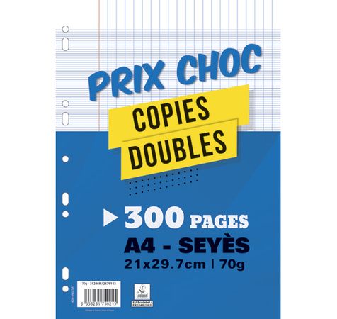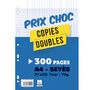 Lot de 300 pages copies doubles grand format A4 grands carreaux Séyès 70g perforées