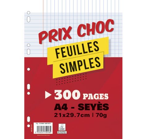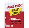 Lot de 300 pages copies simples grand format A4 grands carreaux Séyès 70g perforées