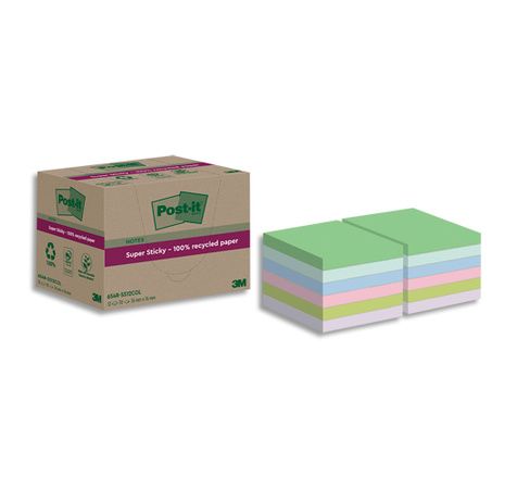 Lot de 12 blocs notes Super Sticky Recyclées 76x76 mm. Couleurs assortis.