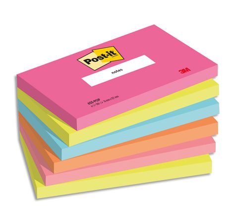 POST-IT® Notes Post-it Poptimistic. 76 x 127 mm. 6 blocs de 100 feuilles. rose, vert, bleu, orange.