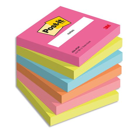 POST-IT® Notes Post-it Poptimistic. 76 x 76 mm. 6 blocs de 100 feuilles. rose, vert, bleu, orange.