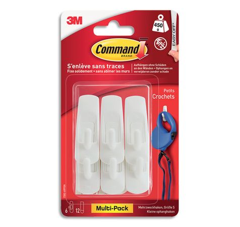 COMMAND Blister de 6 crochets standard blanc Command™. Puissance de maintien : 450 g
