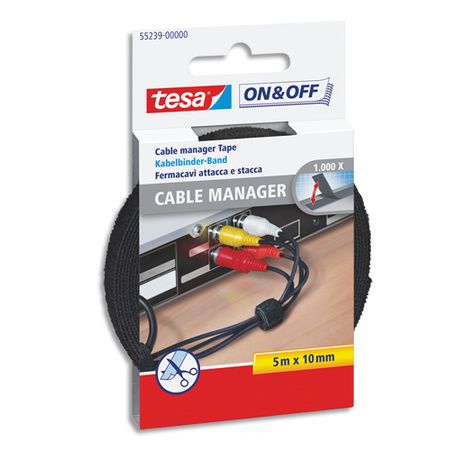 TESA Cable MANAGER Universal bande auto-agrippante 5mx1cm. Coloris noir