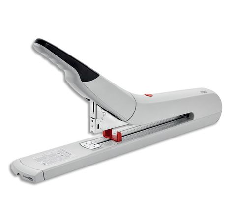 Grande capacité. Dispose du système by pass : en retournant l'enclume, ce système gère automatiquement le repliage de l'agrafe à la bonne longueur, plus besoin de changer systhématique de tailles d'agrafes. Profondeur d'agrafage jusqu'à 250 mm.