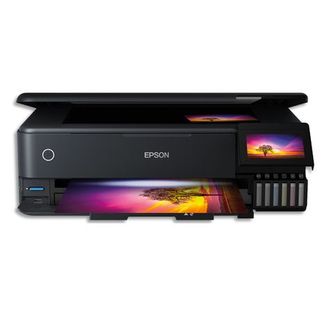 – 2 bacs à chargement frontal de 40 papiers photo (10 x 15 et A4) + 1 bac arrière de 100 feuilles (sortie motorisée).