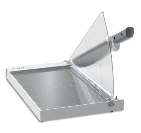 Plateau en verre premium (format DIN) permettant l'emploi de marqueurs adaptés sur la surface. Lame et contre-lame en acier inoxydable haute qualité. Guide lumineux pour une meilleure visibilité de la coupe.