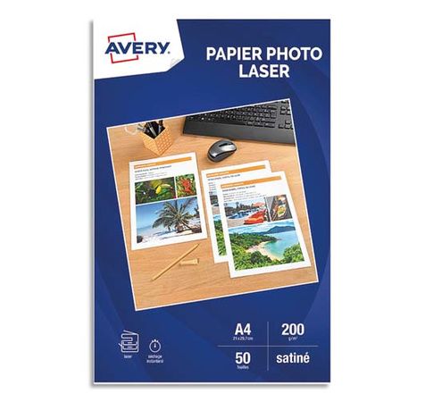 AVERY Boîte de 50 feuilles de papier photo brillant A4, Jet d'encre, 200 g. Impression recto verso