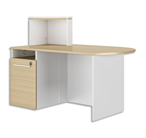 OFFICE Banque d'accueil droit L145 Chêne Structuré. Dimensions : L145/45 cm x H112/74 cm x P90 cm