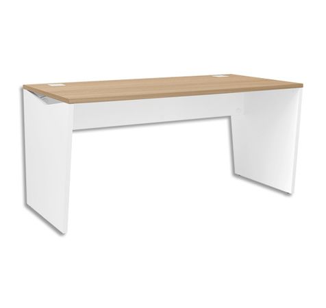 GAUTIER OFFICE Bureau pied panneau Yes Chêne, 2 passe-cables L160 x H74 x P80 cm