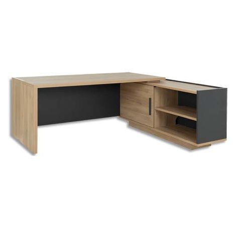 OFFICE Bureau retour Droit Brabant Chêne Anthracite - Dimensions : L200/218 x H75 x P90/180 cm