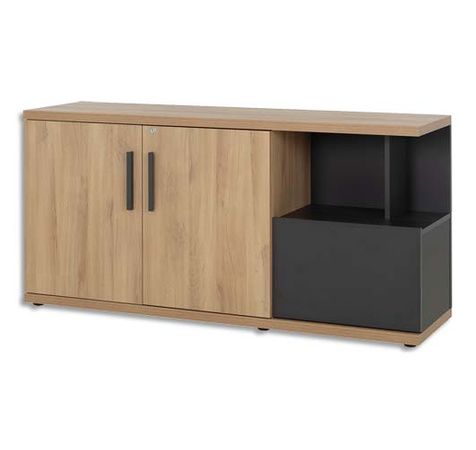 OFFICE Crédence Brabant Chêne Anthracite, 2 portes, tiroir pour DS - Dim : L160 x H78 x P45 cm