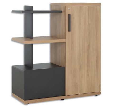 OFFICE Rangement compact Brabant Chêne Anthracite, tiroir pour DS, 1 porte L108 x H123 x P45 cm