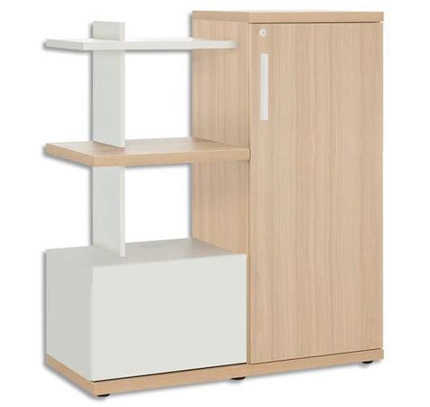 OFFICE Rangement compact Brabant Chêne Blanc, tiroir pour DS, 1 porte - Dim L108 x H123 x P45 cm