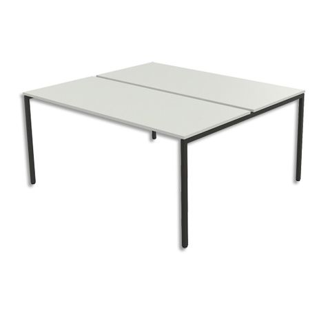 Bureau bench 4 pieds PRIMA 160 x 140 cm. Hauteur 73cm. Plateau mélaminé 19mm Blanc et piètement noir