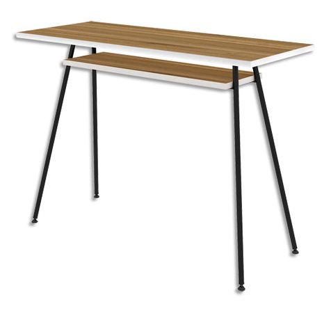 Plateau mélaminé 19 mm décor noyer. Pied tube rond Ø 18 mm en acier finition époxy blanc ou noir équipé de vérins stabilisateurs. Dimensions produit fini H.75 x L.100 x P.40 cm. Logistique : livré à plat, montage facile.