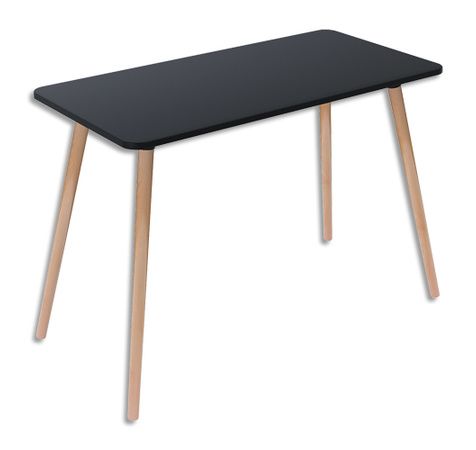 Bureau HOP 100x50cm, plateau 19mm noir, chant noir, pied hêtre vernis