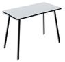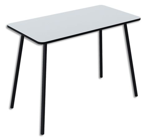 Plateau mélaminé 19 mm, coloris blanc ou hêtre, chant noir. Pied tube 30 x 15 mm en acier finition époxy noir. Dimensions produit fini – H.75 x L.100 x P.50 cm. Livré à plat, montage ultra facile. Design intemporel.