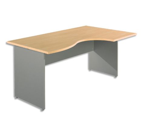 SIMMOB Bureau compact 160 x 80/100 cm retour à droite hêtre + voile de fond couleur alu