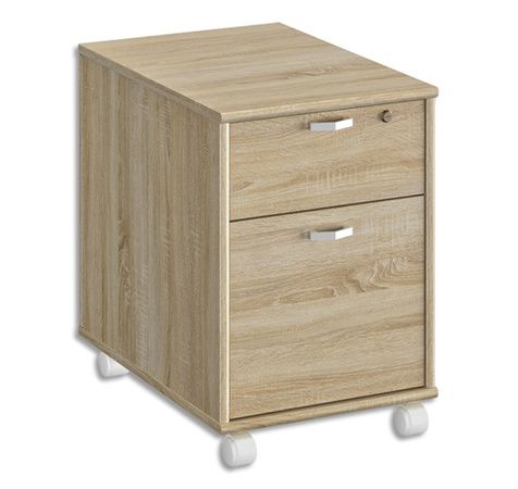 Caisson mobile 2 tiroirs dont 1 pour DS avec serrure, L42xH61xP60 cm. Finition Chêne sonoma-Blanc