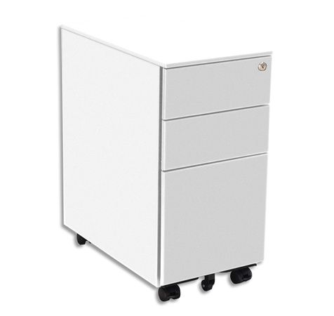 PIERRE HENRY Caisson mobile Slim 3 tiroirs dont 1 pour dossiers suspendus blanc. Dim H60 x L.30 x P.