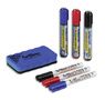 Kit pour tableau blanc avec 1 brosse magnétique + 6 marqueurs 3 coloris assortis