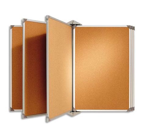 Comprend 6 volets recto-verso pivotants et une console murale pour un gain de place. Idéal pour l'affichage et la consulation de documents. Volet en liège. Tableaux avec encadrement en aluminium anodisé.