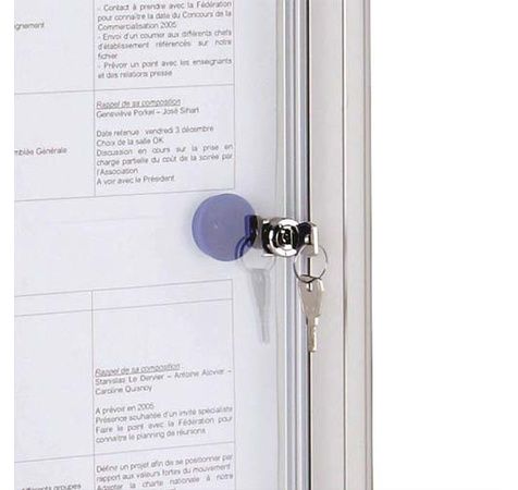 Vitrine d'extérieur avec cadre en aluminium. Vitrage d'une épaisseur de 4 mm incluant une serrure pour sécuriser vos documents. Etanchéité sans joint et ventilation naturelle. Portes battantes.